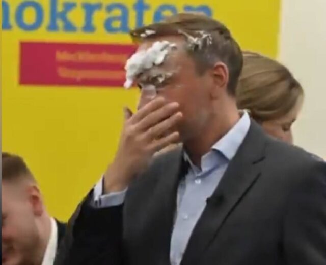 Një zëdhënëse lokale e FDP dhe një dëshmitar okular tha se ishte një pseudo-tortë e bërë nga krem rroje. “Fatkeqësisht nuk ishte krem, vetëm sapun”, tha Lindner.