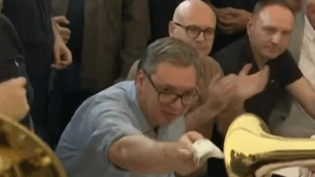 Momenti kryesor i festës ishte përpjekja e Vuçiqit për të shpërblyer trumbetarët – me një kartëmonedhë prej 2000 dinarësh, të cilën ua zgjaste gjatë dhe me ngathtësi. E gjithë skena u bë e pakëndshme edhe për vetë Vuçiqin, gjë që shihej qartë në shprehjen e tij të fytyrës, dhe u regjistrua në një video që po qarkullon në rrjetet sociale.