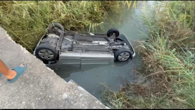 Një automjet ka humbur kontrollin dhe ka dalë nga rruga duke përfunduar i përmbysur në kanalin anësor.