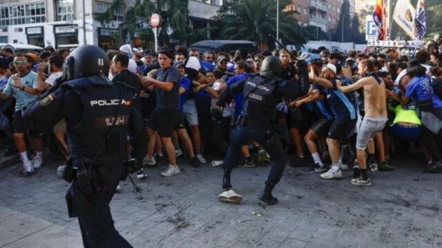 Policia u detyrua të ndërhynte me përdorimin e shkopinjve për të shpërndarë turmat, duke sjellë skena të shëmtuara që errësuan atmosferën e një dueli të madh evropian.