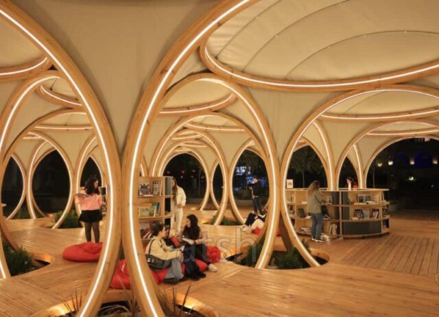 Kjo hapësirë që bashkon arkitekturën me artin dhe kulturën është vepër e arkitektit Chris Precht. Librat e ekspozuar, mund të lexohen vetëm brenda “Tirana Moons”. Interes gjatë këtyre ditëve kanë pasur kryesisht moshat studentore si dhe të moshuarit.