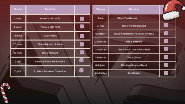 Nga Viti i Ri te Dita e Verës, Bajrami i Madh apo Nevruzi… te Pashkët Katolike dhe ato Ortodokse, bashkë me ditët e shënuara kombëtare… shqiptarët do të mund të gëzojnë plotë 15 festa vitin e ardhshëm.